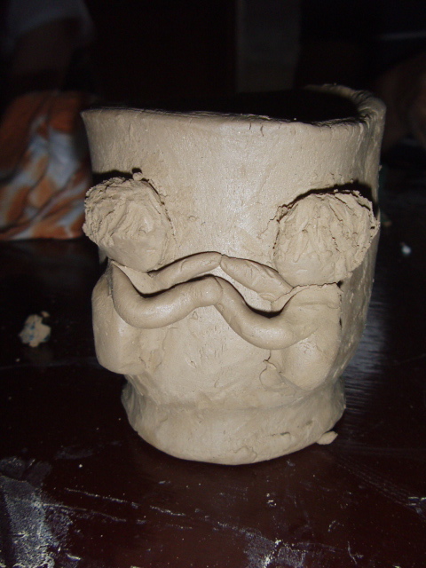 二つ目の作品は、まさに陶磁器の代表・器。「立体的な作品を作るとたのしいの」という教えてくれる人のアドバイスに、こんなものを作ってみました。