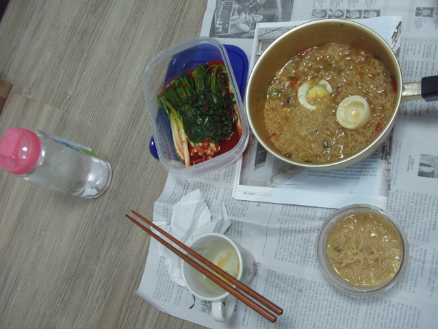 ちなみに今回は友達の部屋で。中に入っているゆで卵は、道で配られたもの。やはり奥が深いんだか浅いんだかわからないぞ韓国。